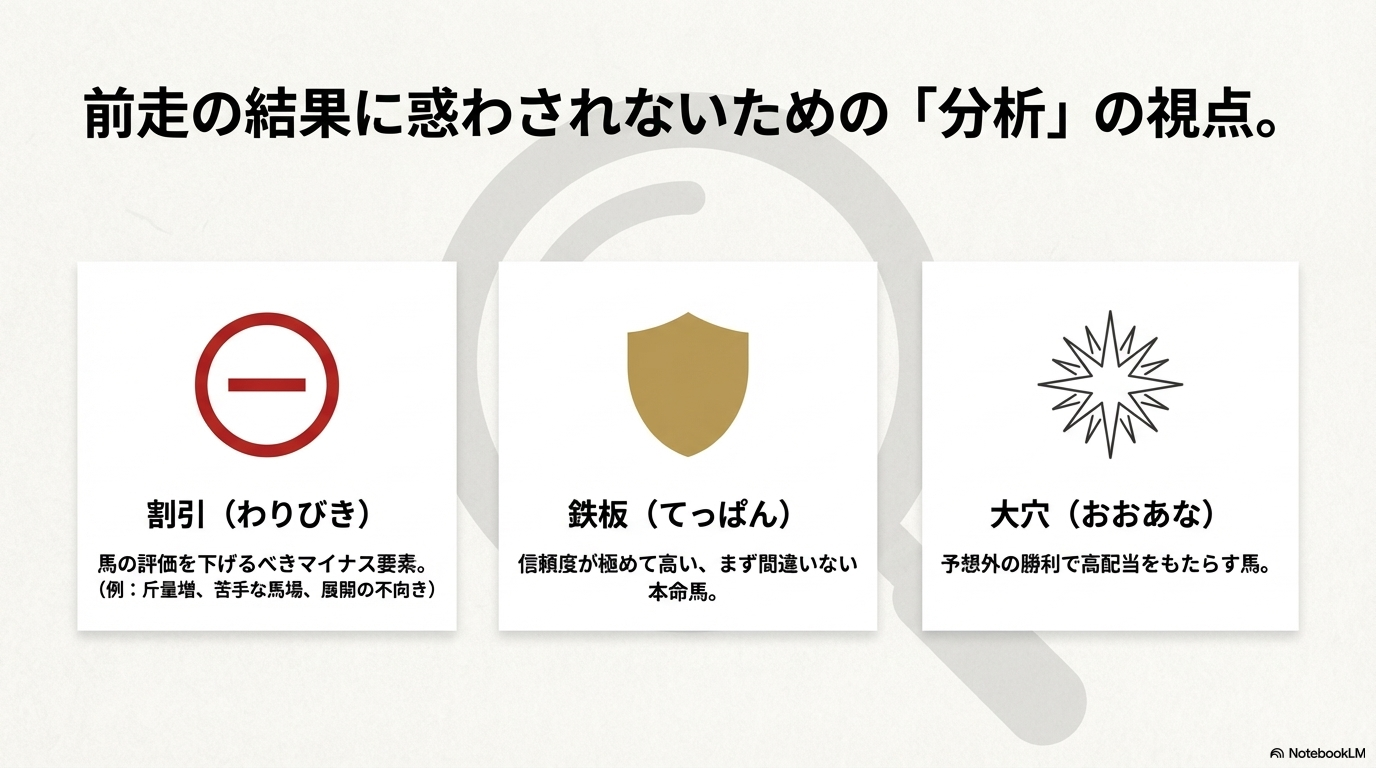 競馬の世界で使われる、時に専門的で、時に「かっこいい」響きを持つ様々な用語。これらを理解することは、単に言葉の意味を知る以上に、競馬観戦の解像度を格段に上げ、予想の精度を高めることにも直結します。