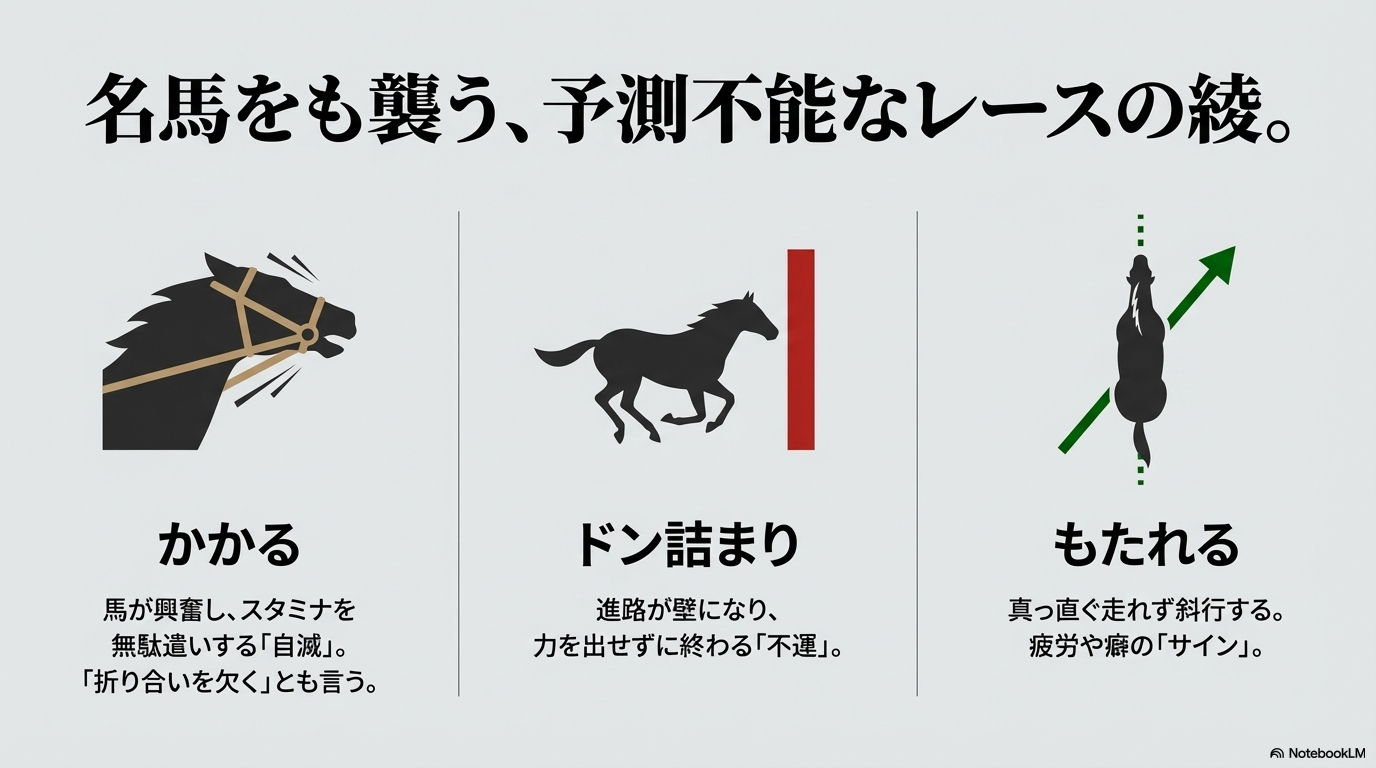 どんなに能力が高く、圧倒的な人気を集めている本命馬であっても、スタートで「アオって」しまえば、その能力を発揮する以前の問題でレースが終わってしまうのです。これは、馬券を買っていたファンにとっては、レース展開以前の「不戦敗」のようなものであり、大きな失望につながります。