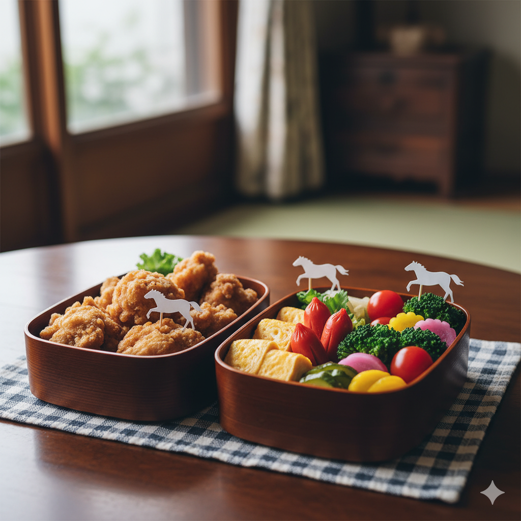 - 3頭目の欄(3つ目の仕切り):穴馬となる「箸休め」(例:ブロッコリー、ミニトマト)