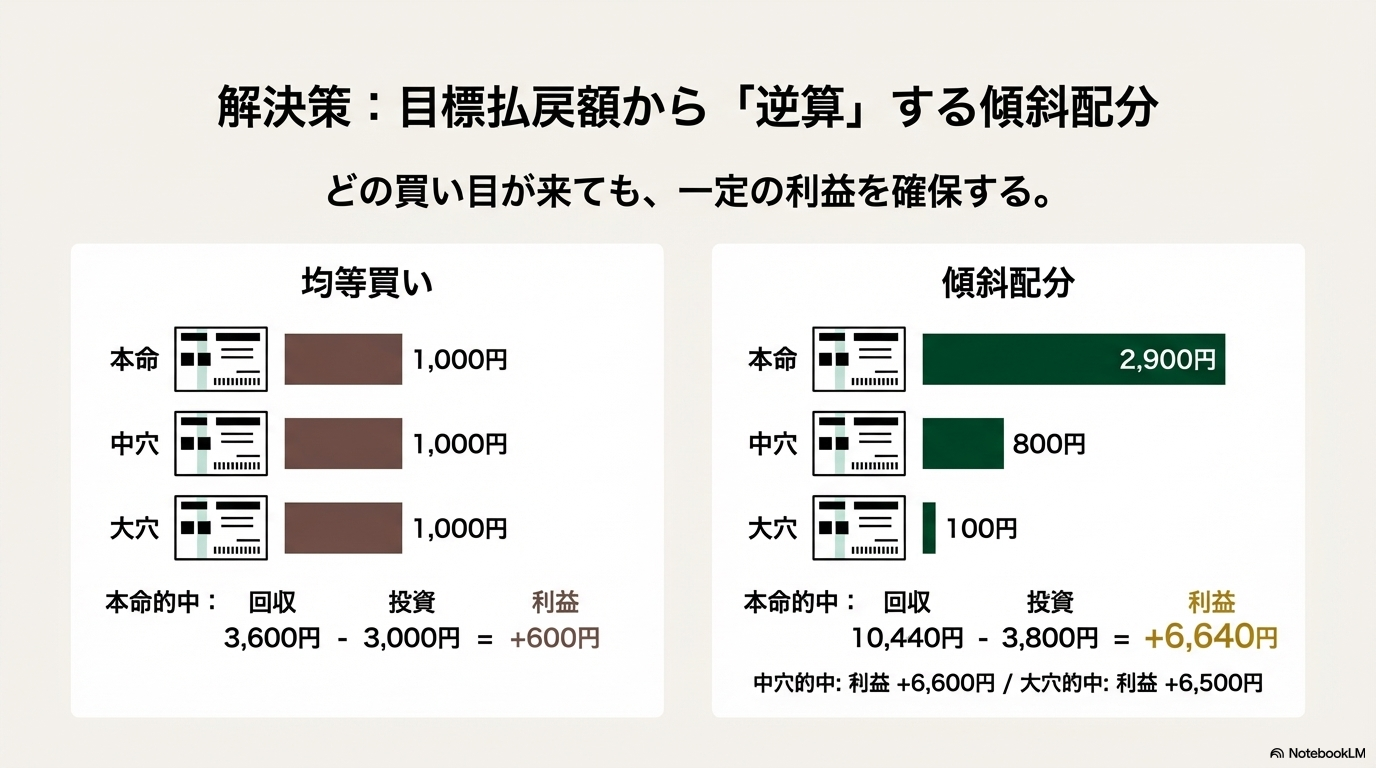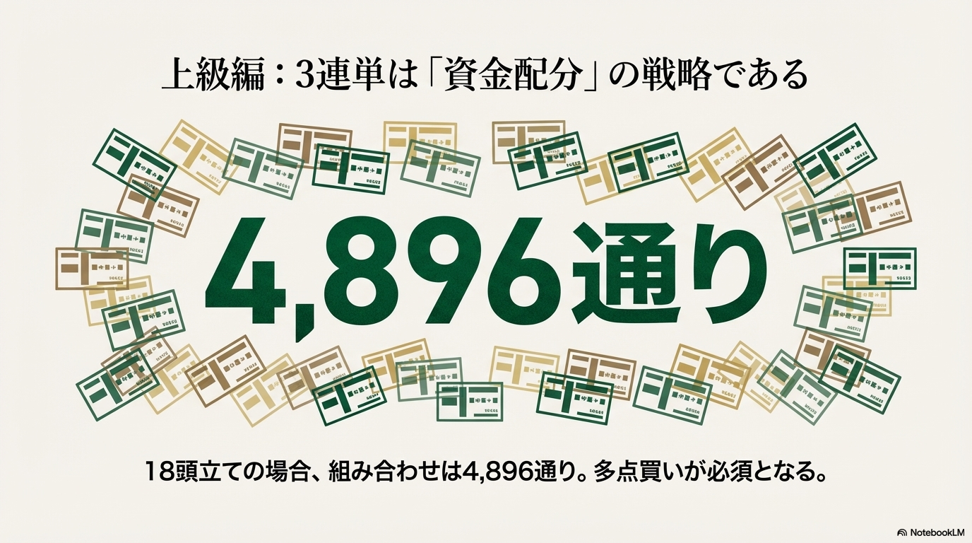 - 3連単のように複数の買い目(多点買い)をする際は、的中しても損をする「トリガミ」を防ぐための戦略的な資金配分が重要です