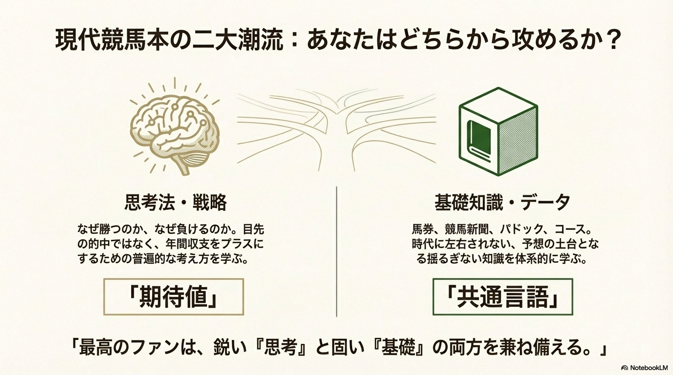 情報が溢れる現代だからこそ、その情報をどう処理し、どう判断を下すかという「思考のOS」そのものを学びたいというニーズが高まっています。また、感覚的な予想から脱却し、客観的なデータに基づいて論理的に勝ちたいというファン層の拡大も、データ分析本の人気を後押ししているのでしょう。そして、ゲームなどをきっかけに新たに競馬に興味を持ったファンが増加していることも、質の高い入門書の需要を支えています。