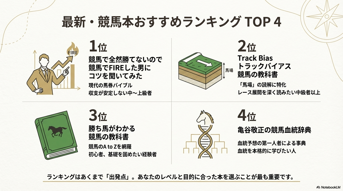 ランキング上位に輝く本が、必ずしもあなたの競馬ライフにとって「最良の一冊」であるとは限りません。ランキングはあくまで現在の市場トレンドを把握するための「出発点」として捉えることが何よりも重要です。