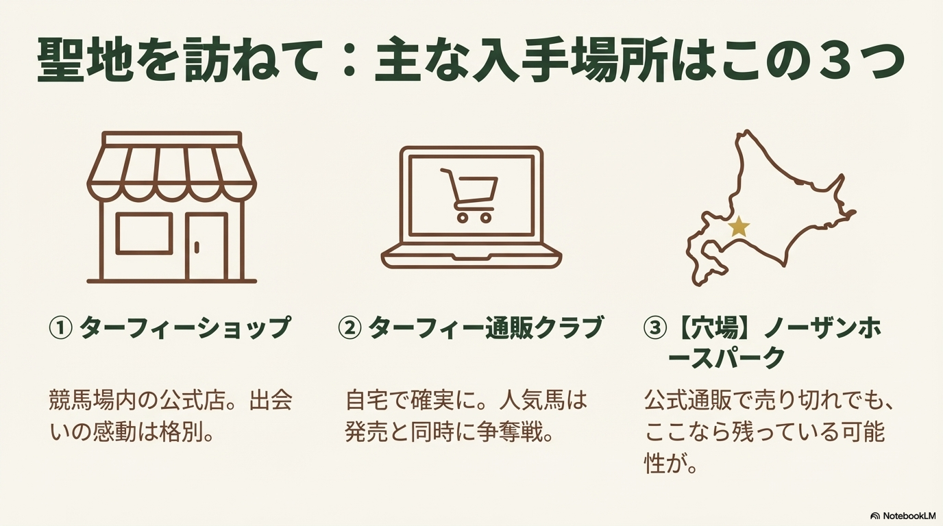 - 公式品が欲しい:ターフィー通販クラブ、ノーザンホースパーク公式をブックマークする。