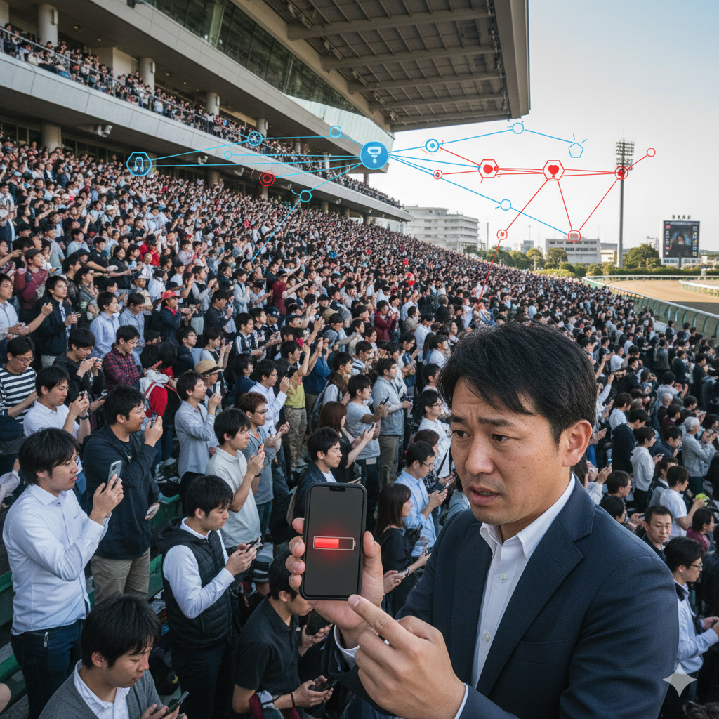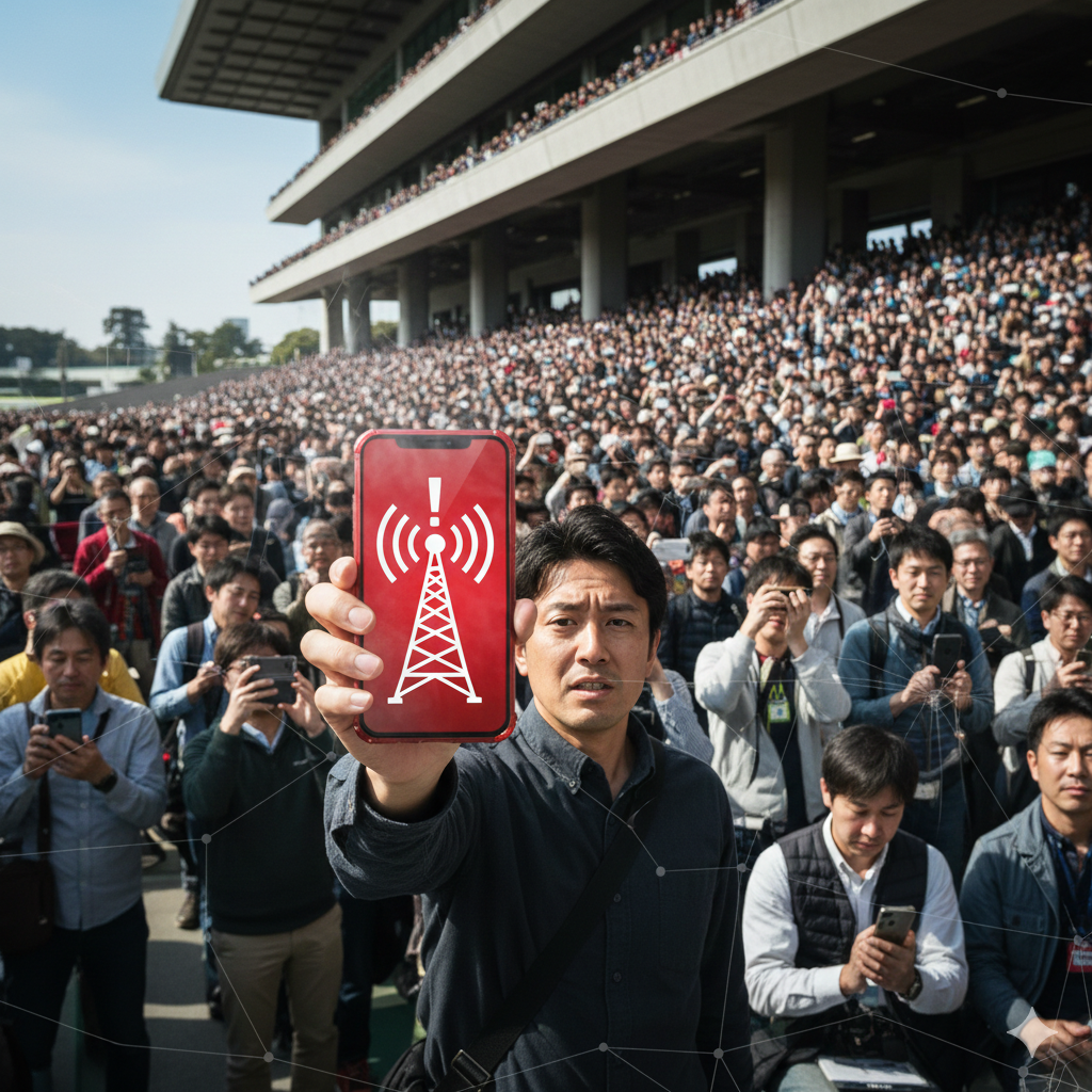 最も大きな原因は、「ネットワーク・コンジェッション(回線混雑)」と、それに伴うスマホ側の過剰な出力です。基地局(セル)一つあたりが処理できる通信量には限界があります。数万人の観客が一斉にIPATでオッズを更新したり、LINEで友人と連絡を取り合ったりすると、基地局へのアクセスが殺到し、一人当たりの通信帯域が極端に細くなります。