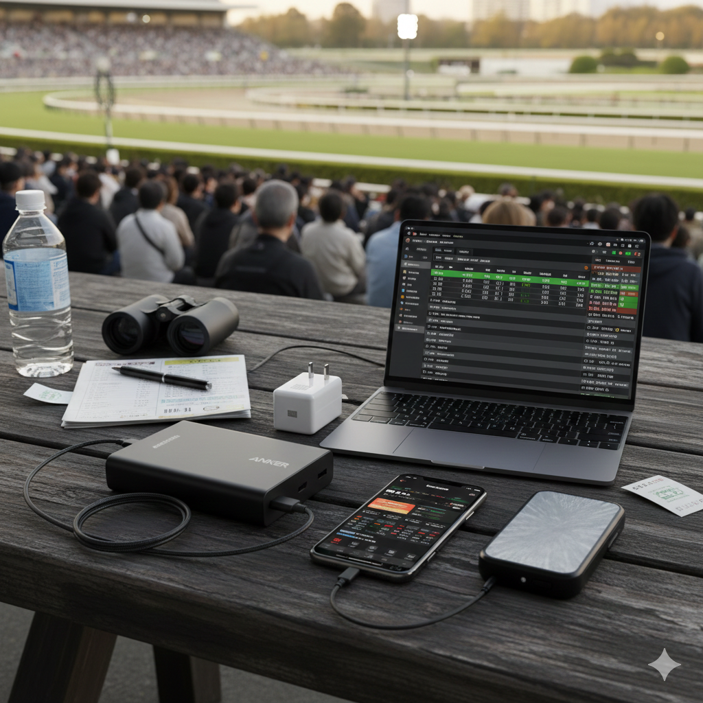 競馬場での予想や投票、今やスマホやPCがないと始まらないですよね。でも、メインレースの直前で「バッテリー残量が10%を切っている!」なんて冷や汗をかいた経験はありませんか。G1の日などは人が多くて電波も悪く、ただ持っているだけでみるみる電池が減っていくあの現象、本当に恐ろしいです。オッズも見れない、IPATで投票もできないとなれば、せっかくの現地観戦も台無しになってしまいます。