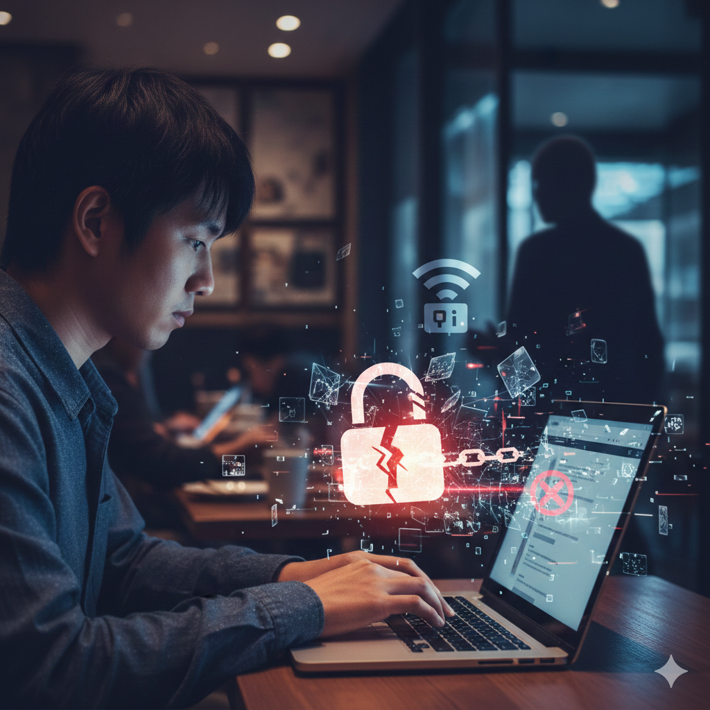 悪意のある第三者が同じWi-Fi内に潜んでいた場合、特殊なツールを使えば通信内容を傍受(盗聴)することは技術的に難しくありません。政府広報オンラインでも、公共の場でのWi-Fi利用時は、IDやパスワードを含む重要な情報のやり取りを控えるよう強く警告しています。