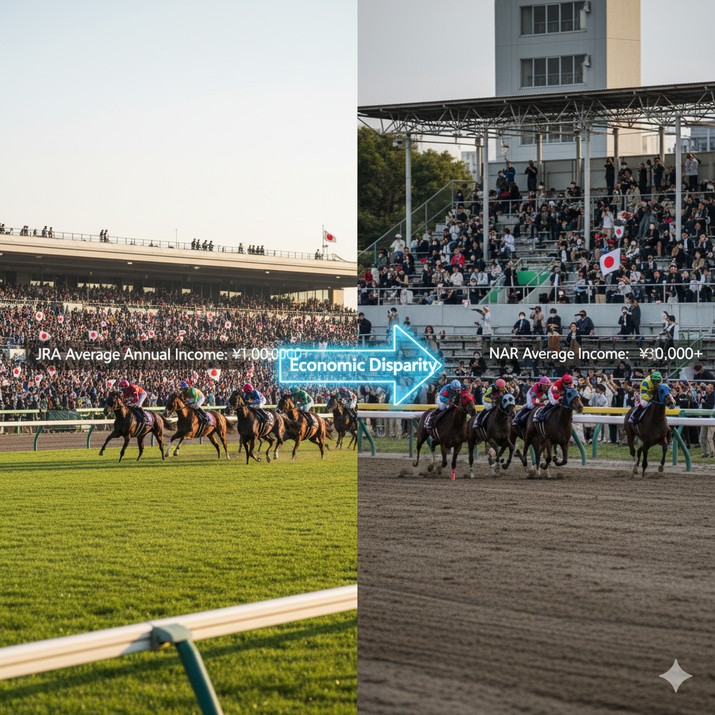 以下の表は、両者の経済規模の違いと、それが騎手の収入にどのように反映されているかを示したものです。
