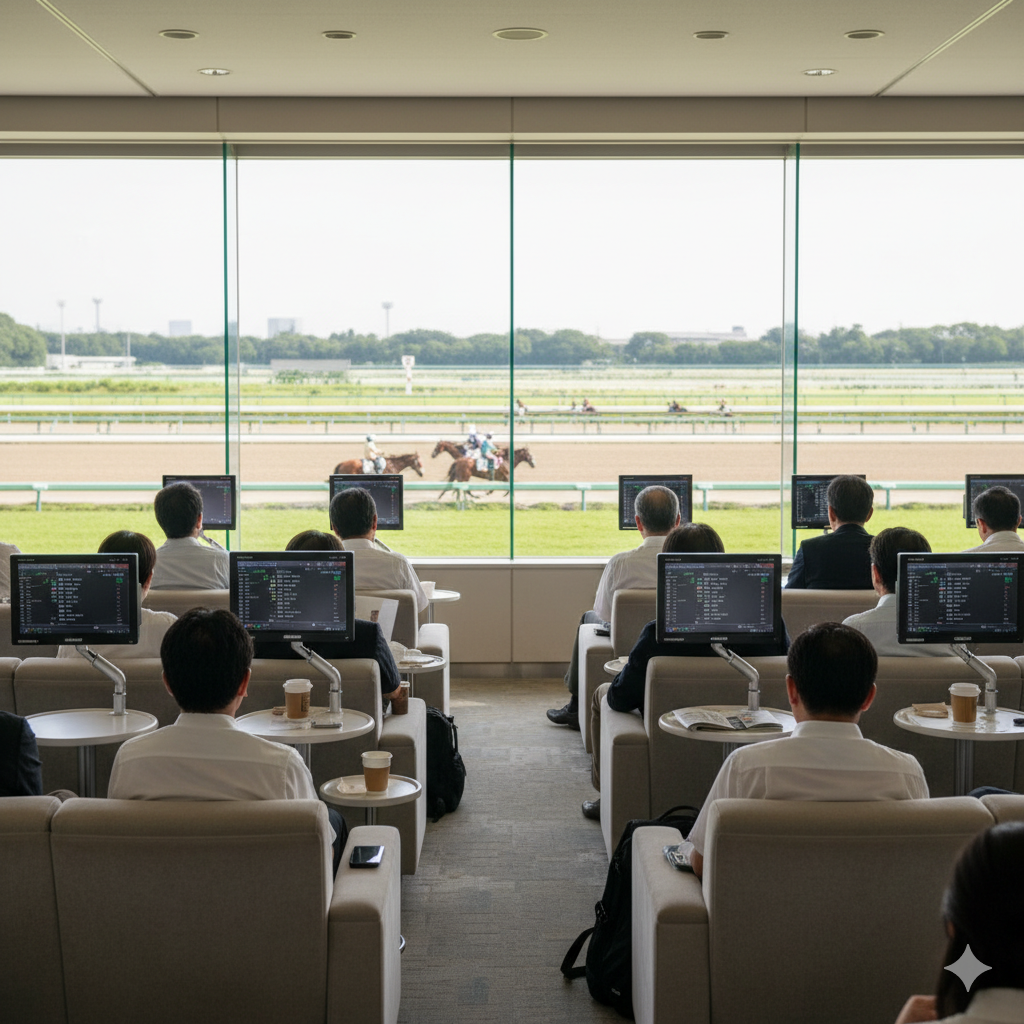 設備もかなり充実しています。座席はゆったりした2人掛けで、テーブルと専用の小型モニターが各席に設置されています 。このモニターが本当に便利なんです。わざわざ席を立たなくても、手元でオッズやパドックの映像、レース実況、払い戻し情報などを自由に切り替えながら見られます。締切直前までオッズとにらめっこしたり、パドックの馬の状態をじっくり確認したりと、情報収集が席で完結するのは嬉しいポイントです。