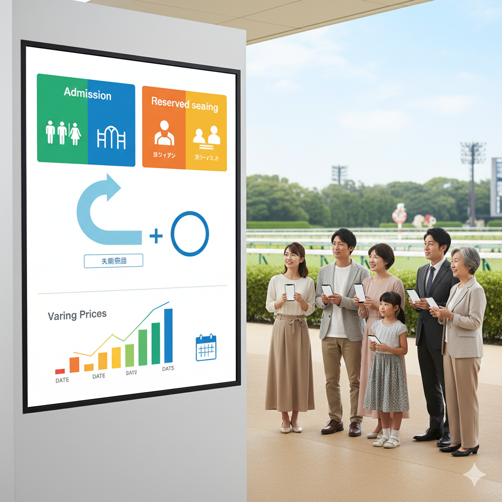 さて、各席の特徴がわかったところで、次に一番気になる「料金」について、全体を整理しておきましょう。特に競馬場ビギナーの方は「指定席料金とは別に、入場料も必要なの?」と疑問に思うかもしれませんね。