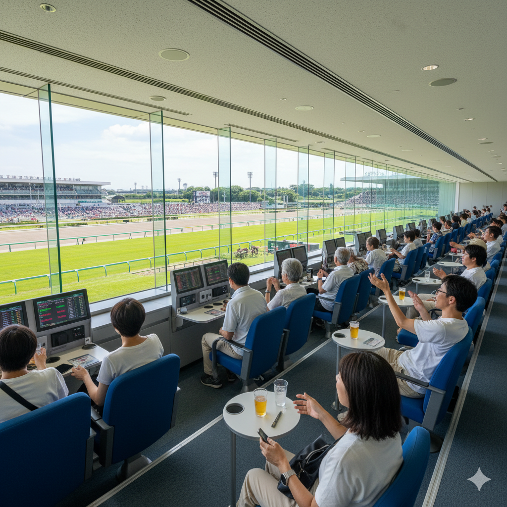 1階・2階の席は、コースに近い屋外(屋根はあります)にあります。最大のメリットは、馬が走る音や観客の歓声をダイレクトに感じられる「臨場感」ですね。レースの迫力を肌で感じたい方、写真を撮りたい方にはこちらがおすすめです。ただし、当然ですが夏の暑さや冬の寒さ、風の影響は受けやすくなります。