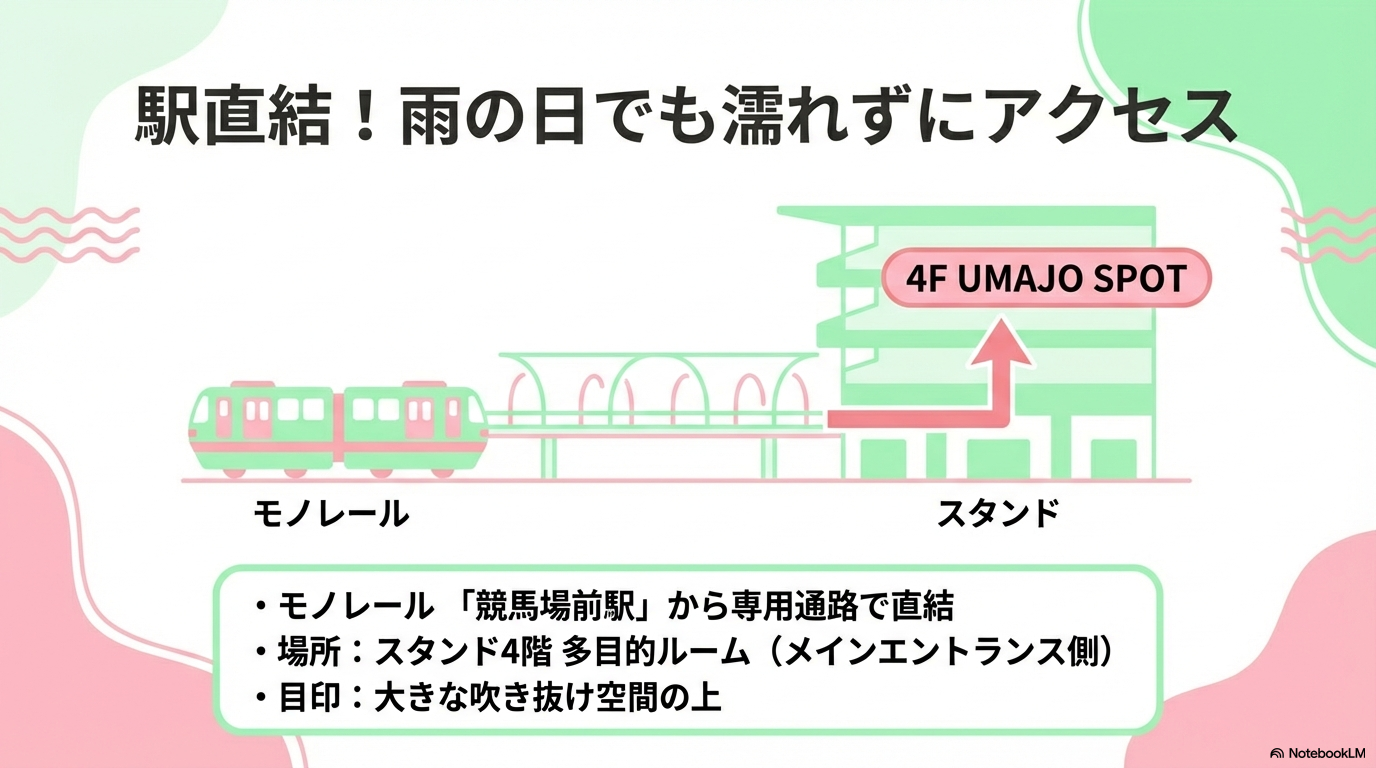 小倉競馬場での観戦を何倍も楽しくしてくれるのが、この女性専用リラックススペースです。まずは、どこに行けばこの素敵な空間に出会えるのか、そしてどんなお楽しみが待っているのか、基本的な情報から深掘りしていきましょう。
