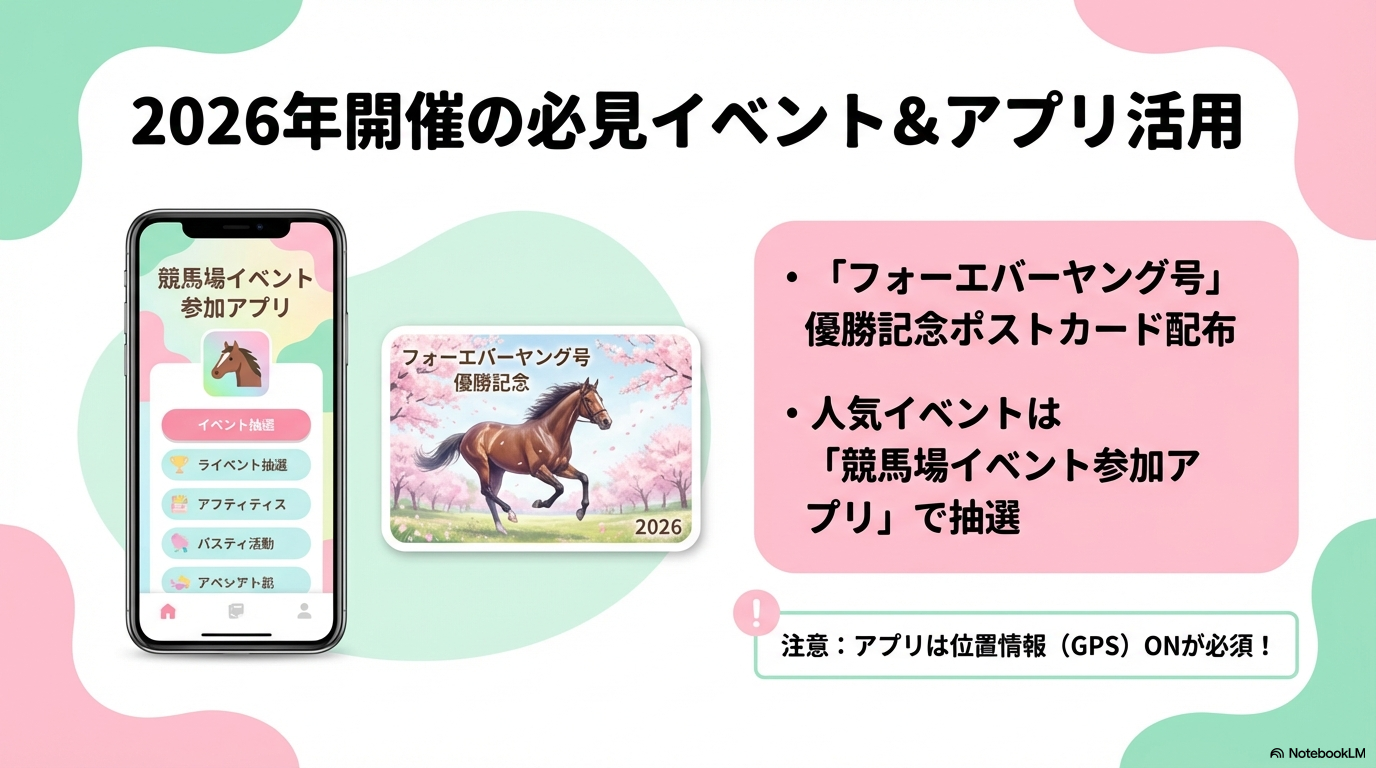 | 競馬場イベント参加アプリ | バックヤードツアーや撮影会の抽選、整理券取得 | GPS連動・当日場内のみ有効 |