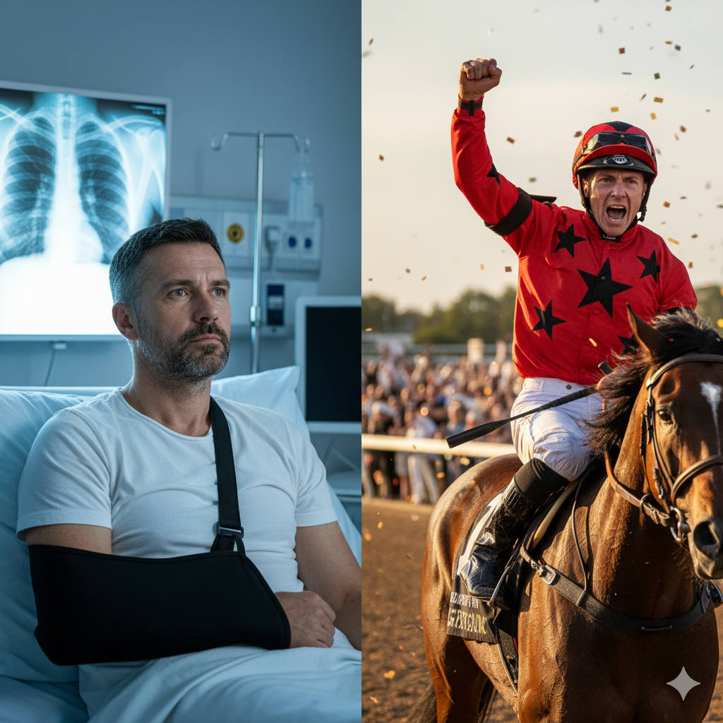 落馬直後、最初に入ってきた情報は「鎖骨と肋骨を骨折」というものでした。もちろんそれだけでも大変なことですが、命に別状はないだろうということ、そしてトップジョッキーにとっては(残念ながら)比較的よくある怪我の範囲でもあったため、「数週間の離脱で済むかもしれない…」という一縷の望みもありました。