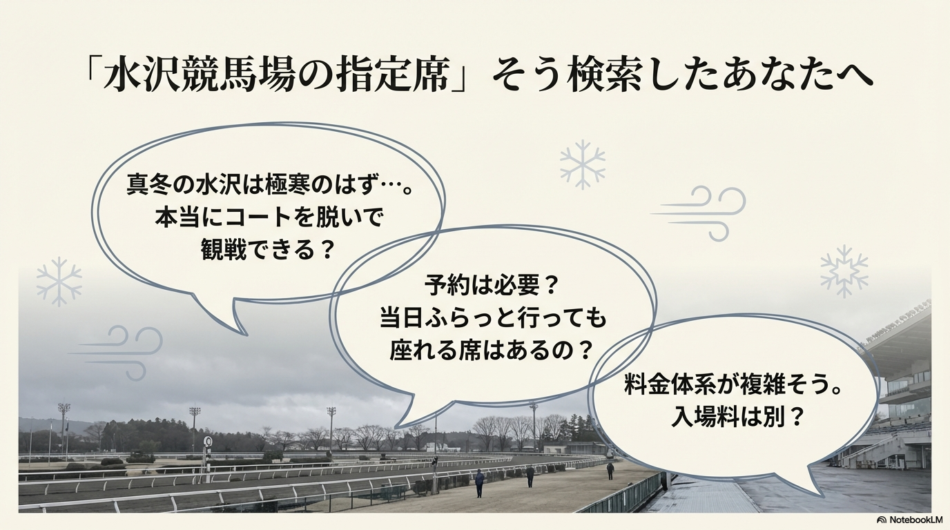 「水沢競馬場 指定席」と検索してこのブログにたどり着いたということは、きっと皆さんは今、いくつかの「不安」や「切実な疑問」を抱えているのではないでしょうか。