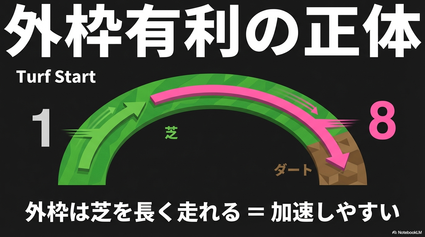 - 乾燥した良馬場ほど、外枠の「芝スタート」の恩恵が大きくなる