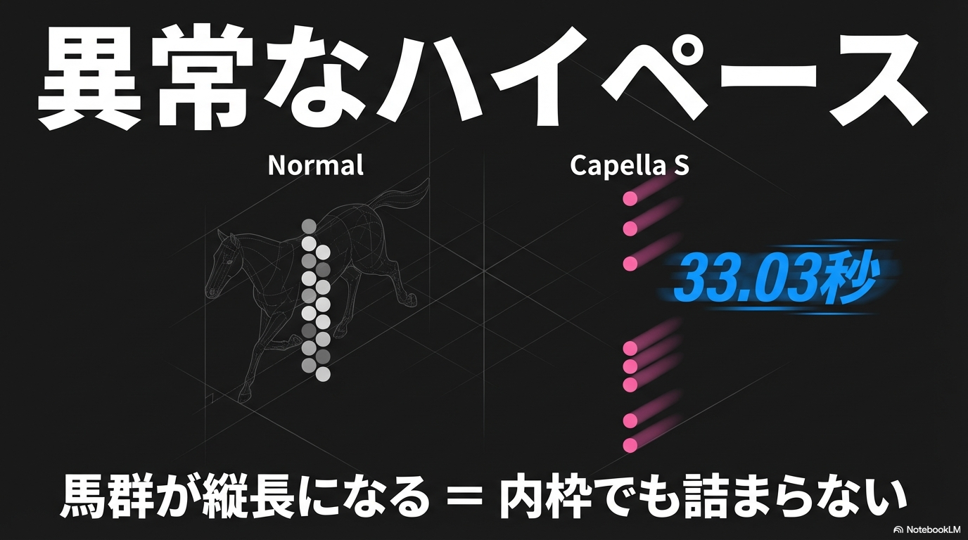| カペラS (G3) | 33.03秒 | 36.77秒 | 差し・追い込み台頭 |