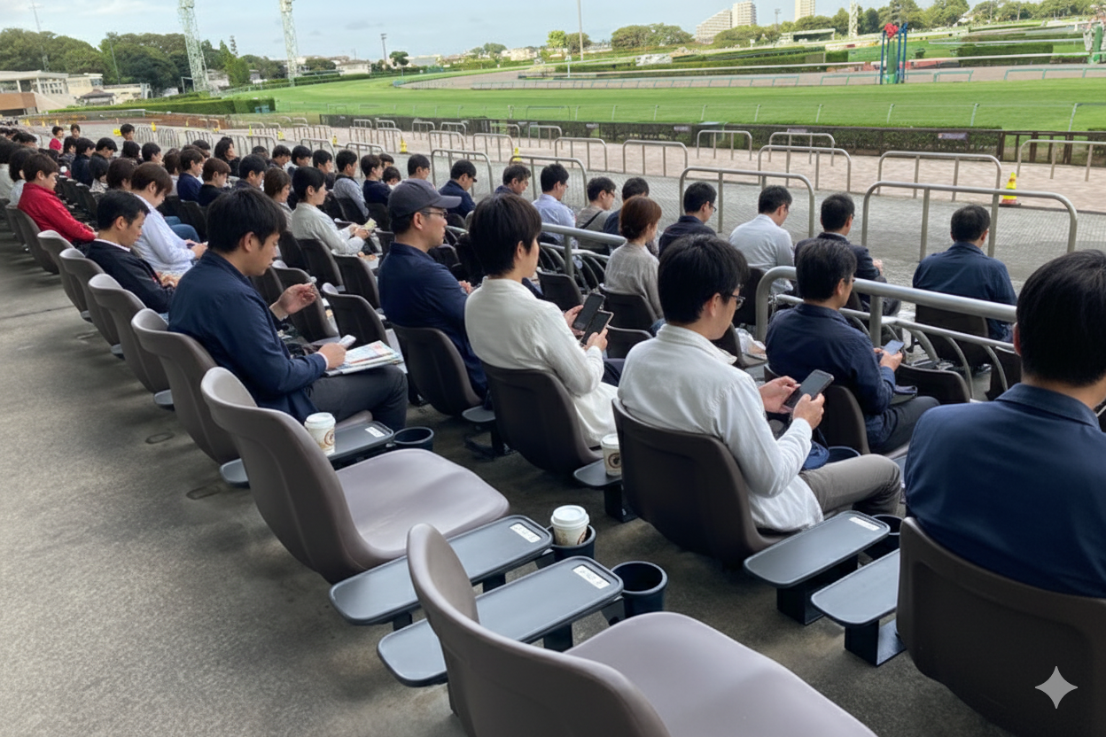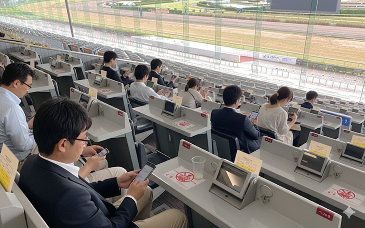 1階席のメリット(近さ)とデメリット(高リスク) 一方、1階席は、コースまでの物理的な距離が2階よりも近いという魅力があります。馬が走る音や騎手の声をより間近に感じられる臨場感は1階席ならではです。しかし、このメリットは、メインレースが近づくと致命的なデメリットに変わる可能性が非常に高いことを、次の注意点で詳しく解説します。