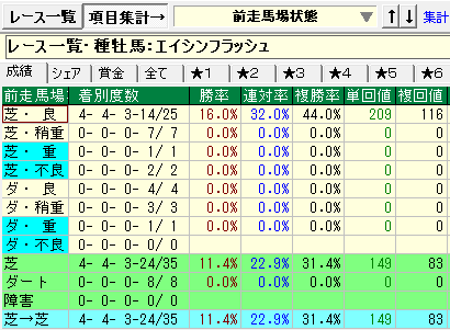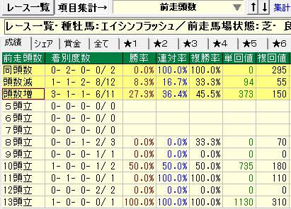 - エイシンフラッシュ産駒⇒前走芝良で前走頭数増
