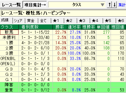 - ハービンジャー産駒⇒①今回新馬戦②6~8枠③1~3人気