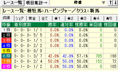 - ハービンジャー産駒⇒今回新馬戦で6〜8枠で1〜3人気