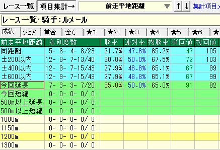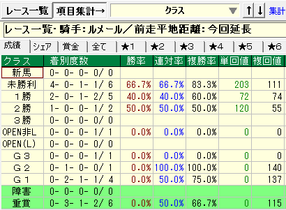 - ルメール騎手⇒①今回距離延長②未勝利クラス