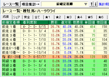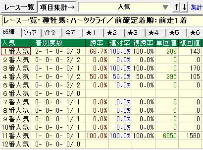 - ハーツクライ産駒(牡馬)⇒①前走1番人気②今回1番人気