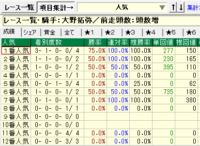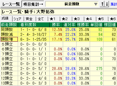 - 大野拓弥騎手⇒①今回頭数増②1~3人気