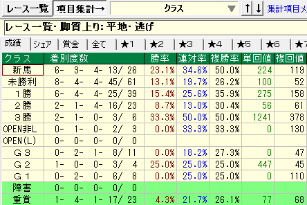 - 枠・脚質⇒4枠の逃げ、先行馬
