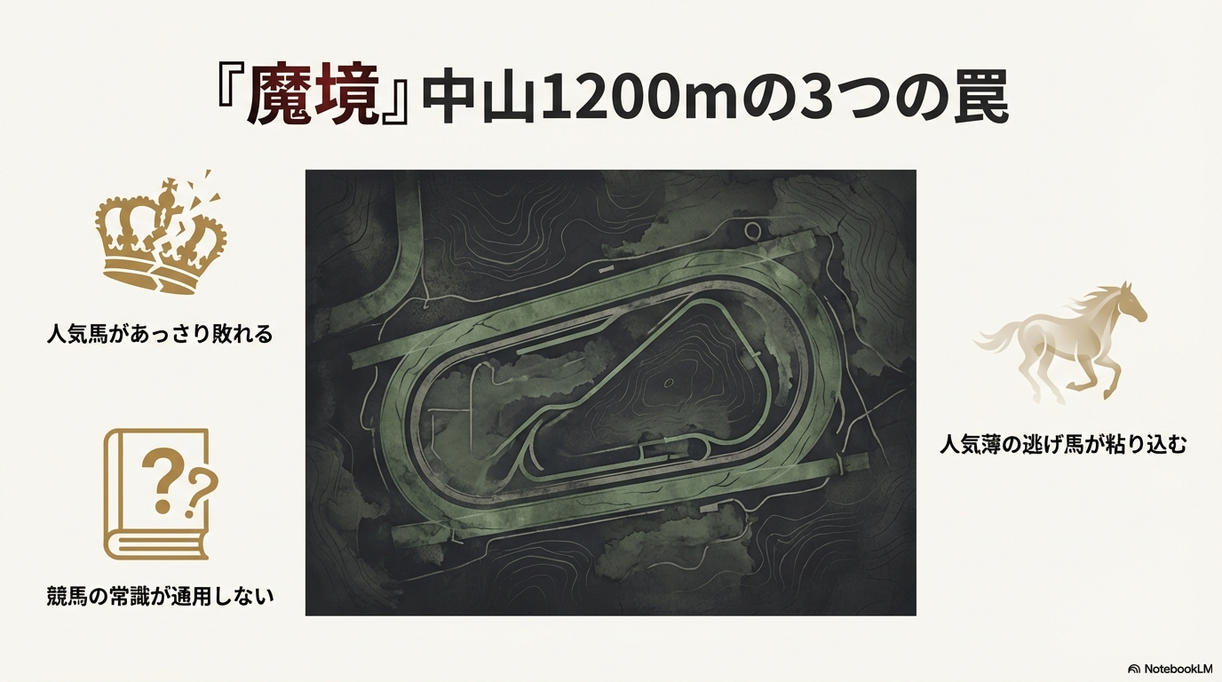 長くなりましたが、ここまで中山競馬場芝1200mの攻略法について、地形、ラップ、血統、騎手など様々な角度からお話ししてきました。このコースは、一見すると「ただの短距離戦」に見えますが、その実態はジェットコースターのような高低差と、特殊なコーナー形状が支配する、JRA屈指の「物理学的なバイアス(偏り)」が働く舞台です。