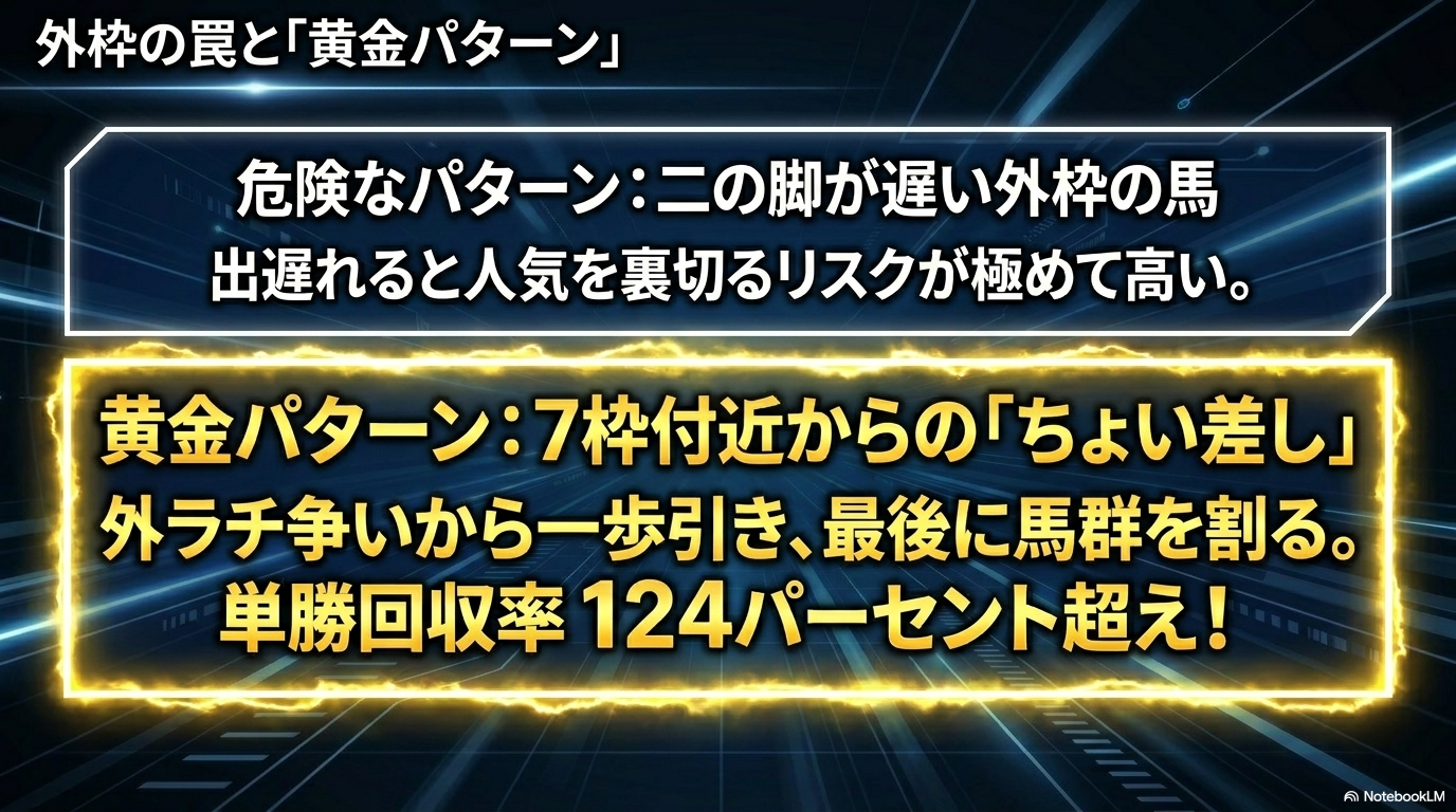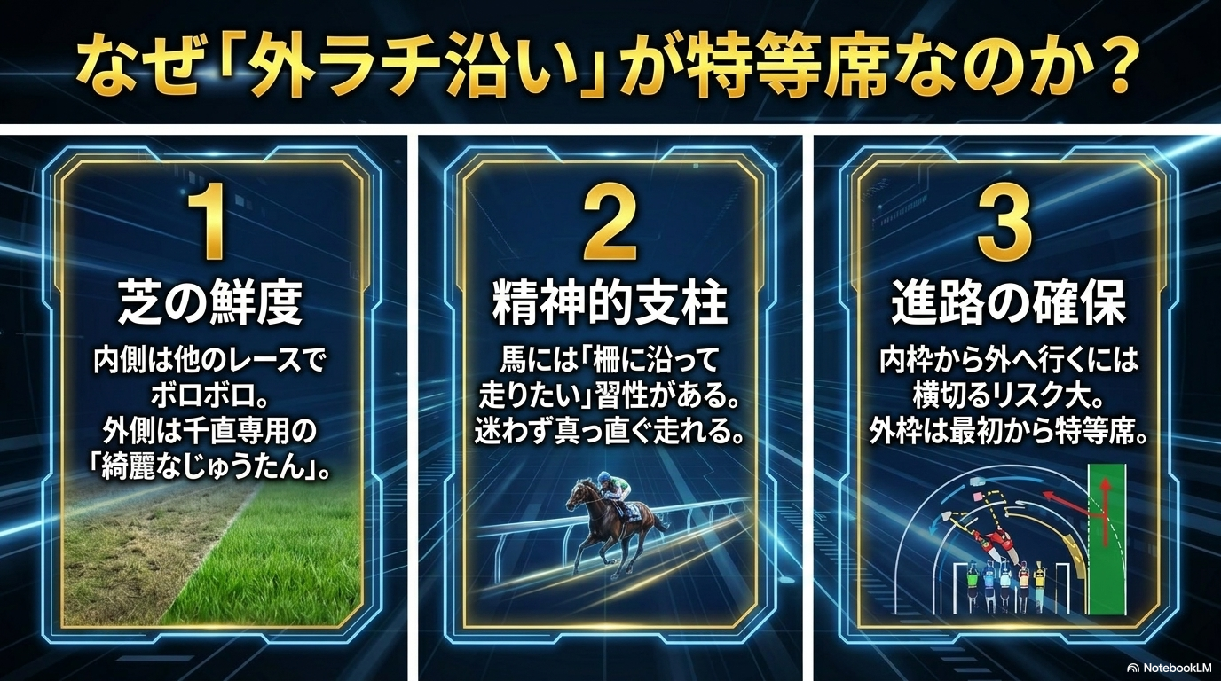 - 「なぜ外枠が有利なのか」という本質的な理由がわかる