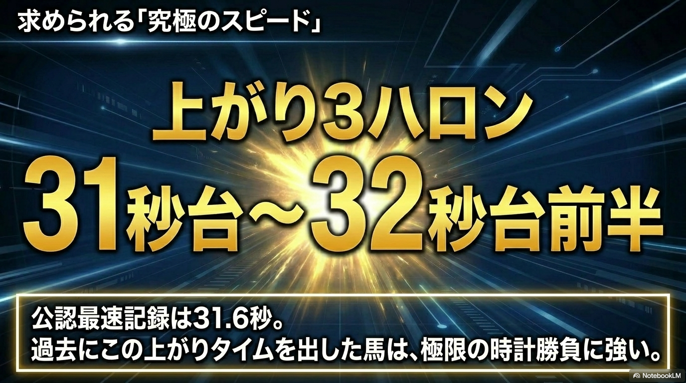 2002年にイルバチオが記録した上がり3ハロン31.6秒という驚異的な公認最速タイムは、千直がいかに特異な舞台であるかを物語っていますね。時計勝負に強い馬を探す際は、過去の千直で上がり31秒台〜32秒台前半の脚を使ったことがあるかをチェックしてみてください。詳しい上がり3ハロンの詳細な分析については、こちらの記事もぜひ参考にしてみてください。 上がり3ハロンとは?意味や調べ方、予想の活用法を徹底解説