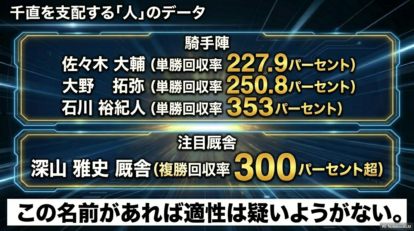 - スペシャリストの選定:菊沢一樹騎手や丹内祐次騎手、菊沢隆徳厩舎といった「このコース専用の勝ち筋」を持つ陣営を最優先。