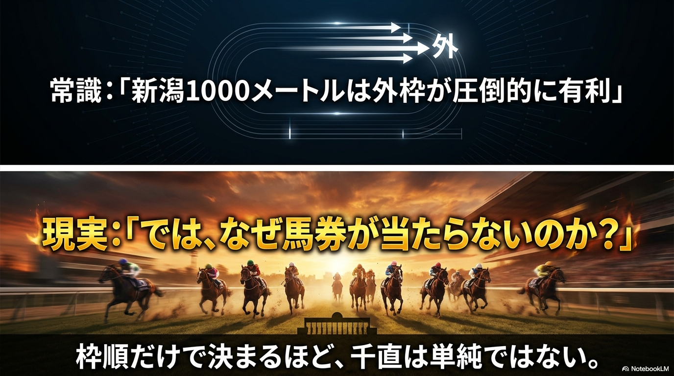 ここまで、新潟競馬場芝1000m(千直)の過去10年にわたる膨大なデータを多角的に分析してきました。いかがでしたでしょうか。日本で唯一「コーナーが一度も出現しない」というこのガラパゴス的な特殊コースは、一見すると「外枠を引いて真っ直ぐ走るだけ」の単純なゲームに見えるかもしれません。