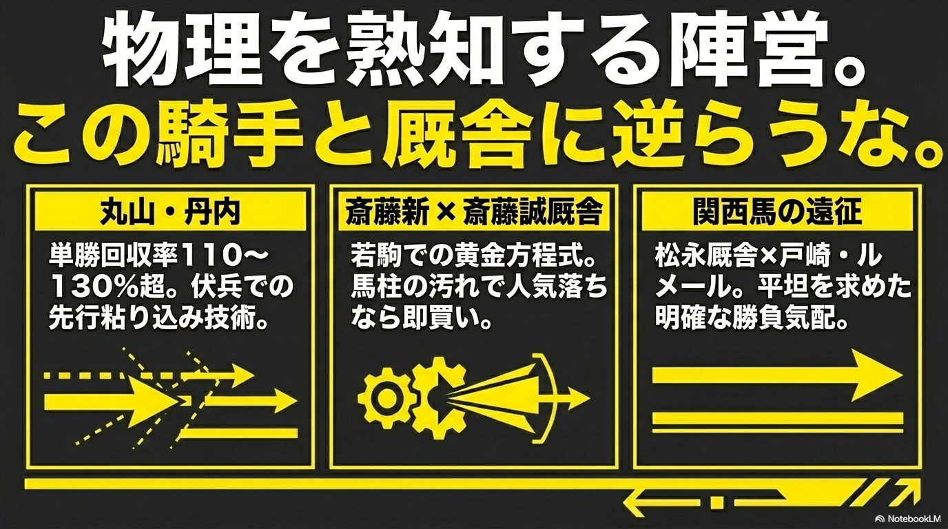 また、人的要因も無視できません。戸崎圭太騎手やルメール騎手のような「位置取りの天才」を軸に据えつつ、丸山元気騎手や丹内祐次騎手、そして斎藤誠厩舎のような「新潟のツボ」を熟知した伏兵を絡めることで、長期的な収支は劇的に安定するはずです。