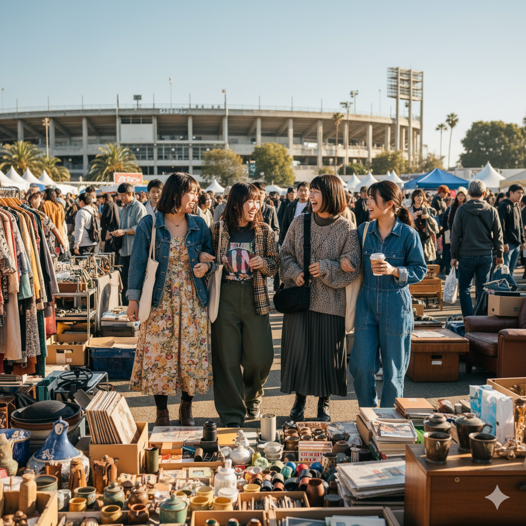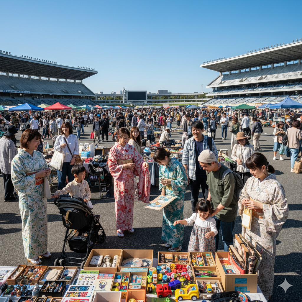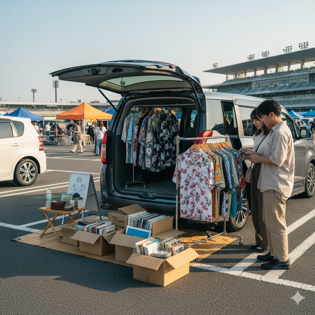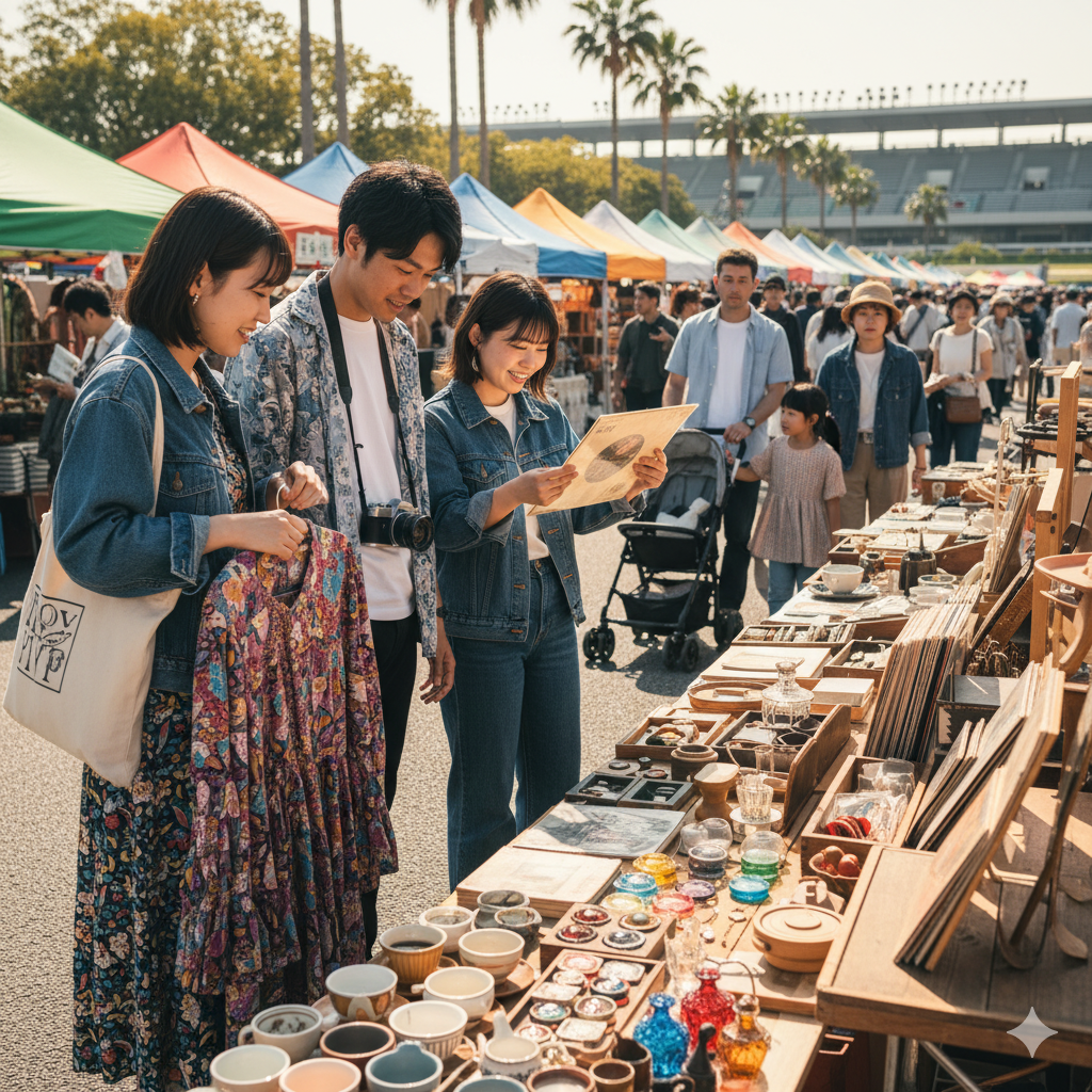 この多様性が、訪れる人々の層にも反映されています。掘り出し物の古着を真剣な眼差しで探すカップルや若者たち、ベビーカーを押しながら雑貨を見て回るファミリー層、そして近年では「日本の“MOTTAINAI”文化やヴィンテージ品」に関心を持つ海外からの観光客まで、非常に多彩な人々が同じ空間に集います。このインターナショナルで雑多な雰囲気こそが、大井競馬場フリーマーケットの醍醐味と言えるでしょう。