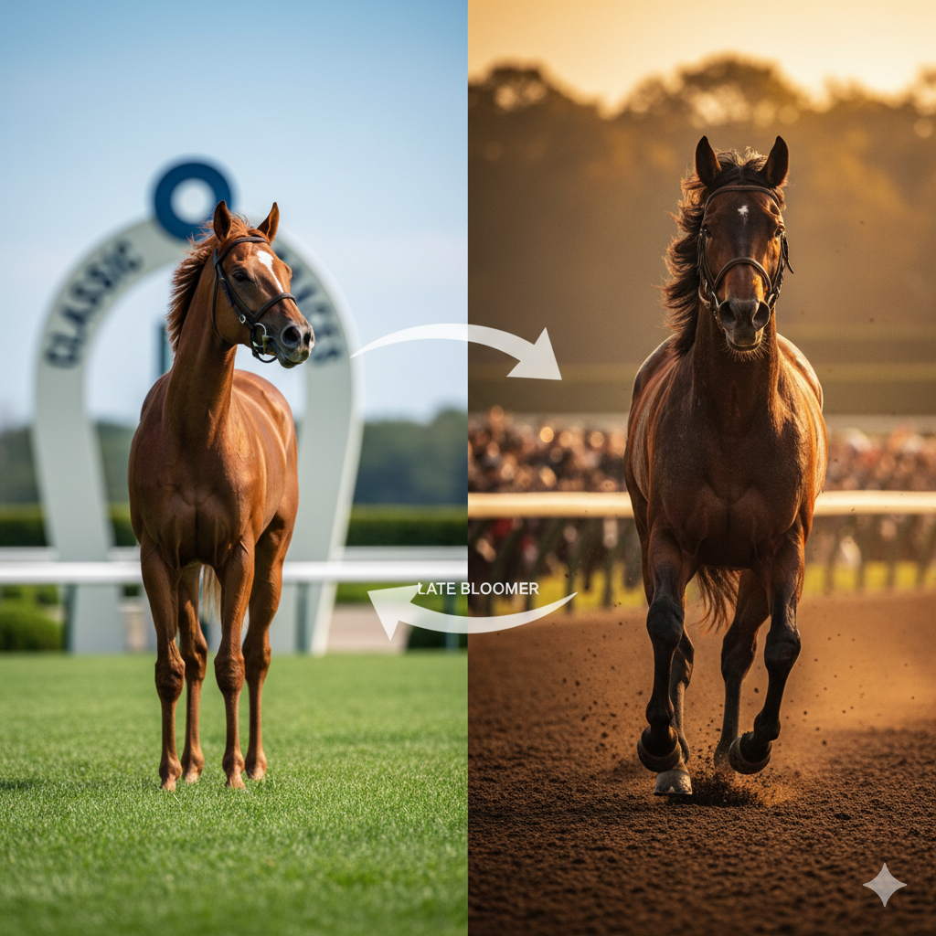 - 【時期のギャップ】:期待は「3歳春のクラシック制圧(早期完成)」。現実は「古馬になってからの本格化(晩成傾向) 」。