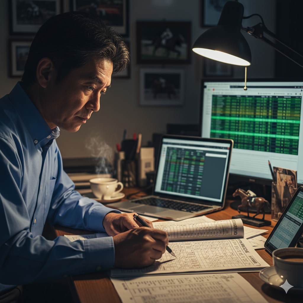 - シナリオの構築(レース展開の予測):「どの馬が逃げてレースのペースを作るのか」「ペースは速くなるか、遅くなるか」「その展開になった場合、どの位置につけた馬が最後に伸びてくるのか」といった、レース全体の流れを複数のパターンで予測します。