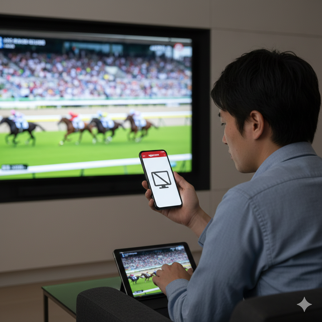 地方競馬なら、アプリ内でパドックからレース本番まで高画質で無料視聴できるため、つい同じ感覚でJRAも観られると勘違いしてしまいがちです。しかし、ここでも「管轄の壁」が立ちはだかります。「馬券は即PATで買えたのに、肝心のレースが見られない!」という悲劇を避けるために、私が実践している3つの視聴ルートを確保しておきましょう。
