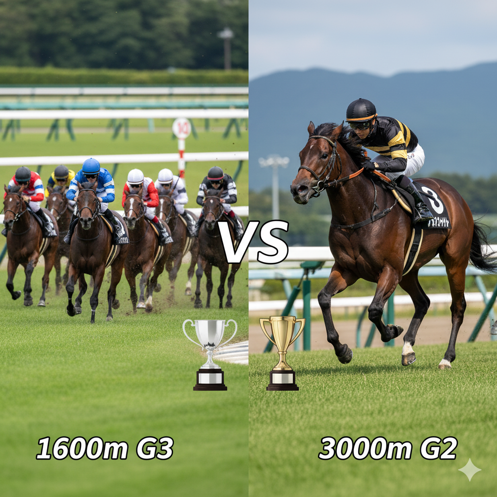 芝1600mのダービー卿CTは、中山競馬場で行われるハンデ戦で、スピードと瞬発力、機動力が問われる激しいレースです。一方、芝3000mの阪神大賞典は、スタミナと持続力、そしてなにより「操縦性」が問われる、全くタイプの異なる長距離戦です。