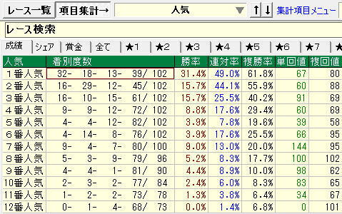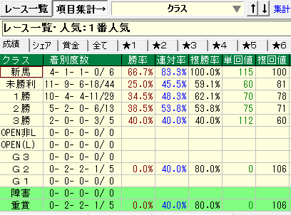 - 前走同級1番人気の成績が優秀