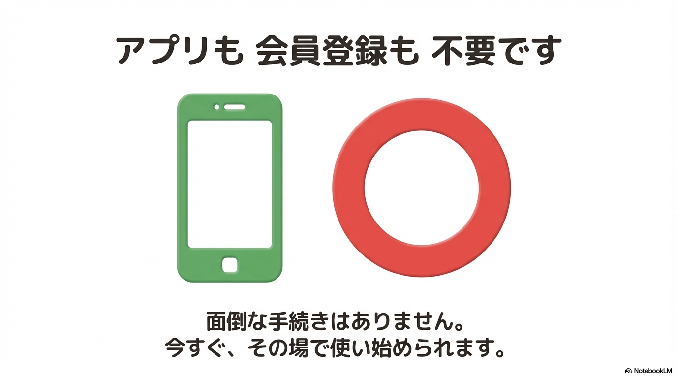 - バックアップ: ネットが繋がらない時に備え、QRコードは画像保存しておく