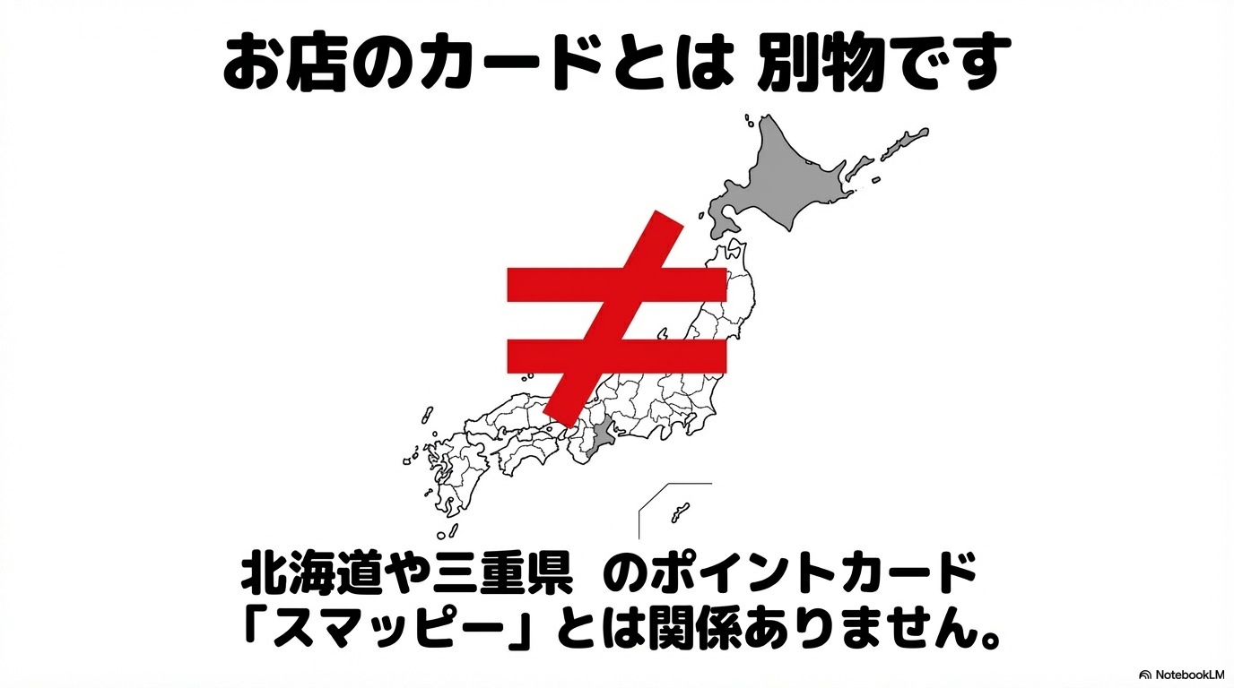 次に混同しやすいのが、北海道美幌町の商工会議所が運営している「スマッピーカード」です。これは地域経済を活性化させるためのICポイントカードで、地元の方々の生活に深く根付いています。お買い物100円(税別)ごとに1ポイントが貯まり、1ポイント1円として加盟店で利用できる仕組みです。