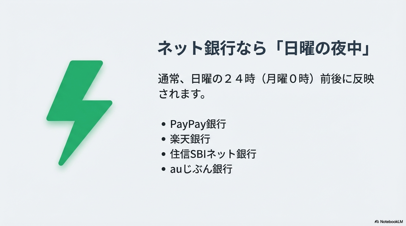 | 反映時間 | ネット銀行なら即時〜数分程度 |