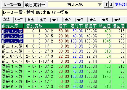 3. オルフェーブル産駒牝馬で前走1〜3番人気で関西馬。今回5番人気以内。