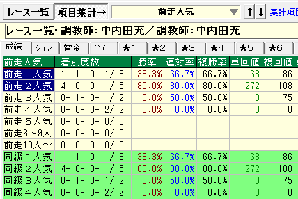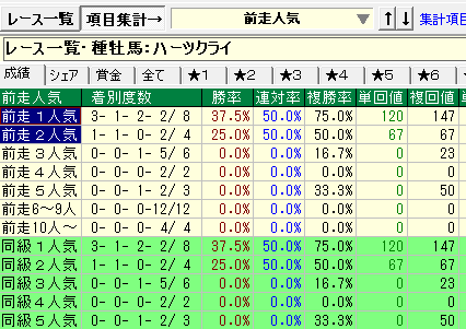 • ②上記条件で今回1~2人気の複勝率は100%。