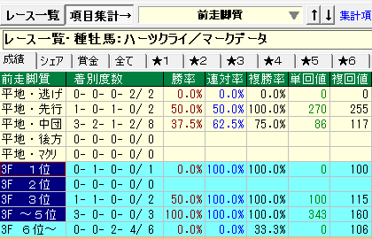 • ②上記条件で前走上がり1位~3位は複勝率は100%