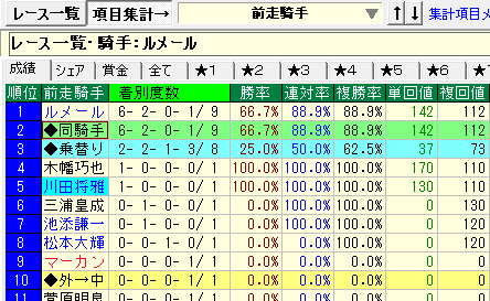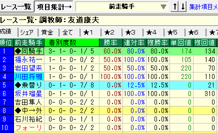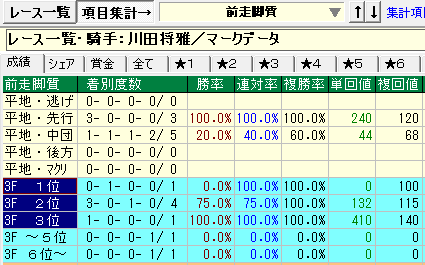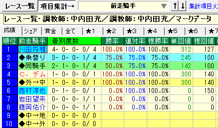 • ②上記条件で今回川田騎手への乗替りは勝率・連対率・複勝率100%。