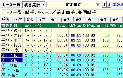 1. ルメール騎手⇒牡馬で継続騎乗で前走上がり1〜2位。