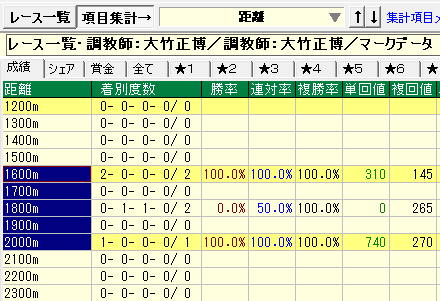 6. 大竹正博厩舎⇒①前走上がり1~5位②今回距離1,600〜1,800m