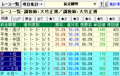1. 大竹正博厩舎前走上がり1〜5位で今回距離1,600〜1,800m。
